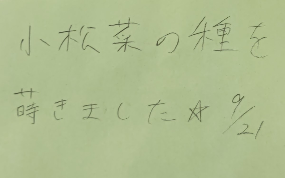 これから寒さに向かうおり、屋根を作らなければならないようなので、いったん小松菜の栽培は終わりにしようと思います。